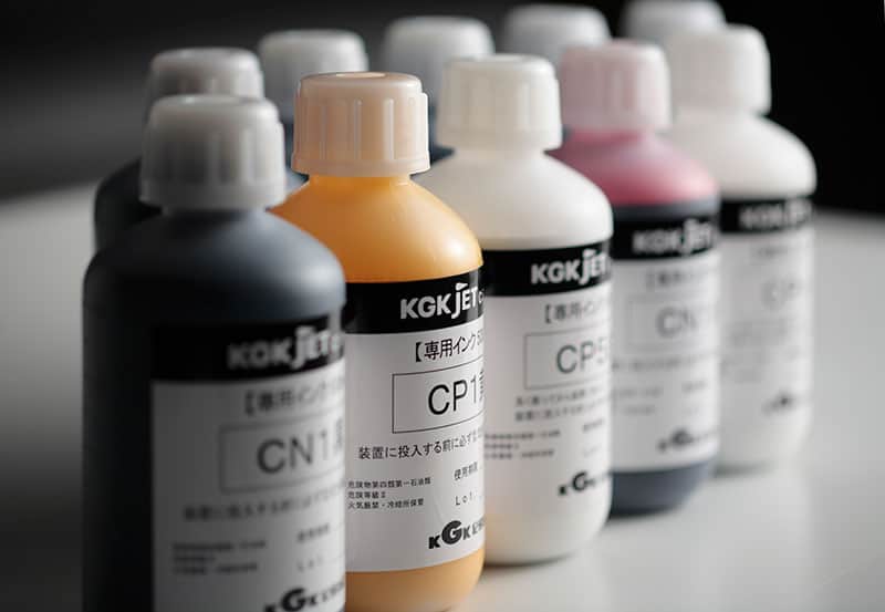 As a premier industrial inkjet printer manufacturing company, KGK develops various types of inks in-house for applications on various substrates. KGK provides printer users with the best matched inks and unique properties such as high adhesion, edibility, heat resistance and etc.